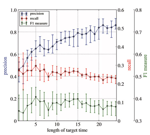 Figure 3: Precision and recall values under target time windows with different lengths