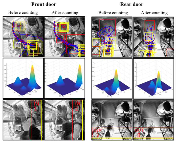 Figure 4 shows the passenger counting process before counting and after counting at the front and rear door.