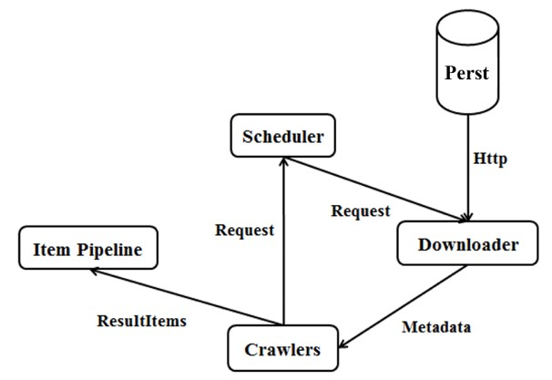 - the Downloader receives requests from Scheduler, downloads metadata and actual data from Perst, and then returns the information to crawler components;