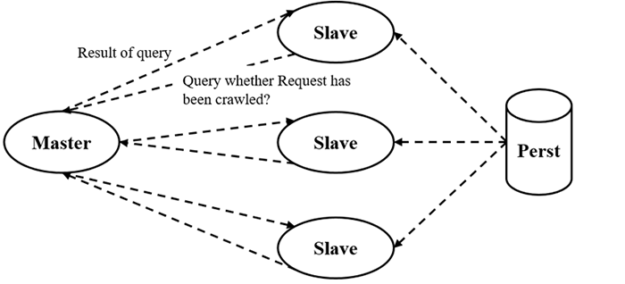 - the Slave produces requests and asks the Master whether a request has been crawled. If not, add it to the waiting queue in the Scheduler.