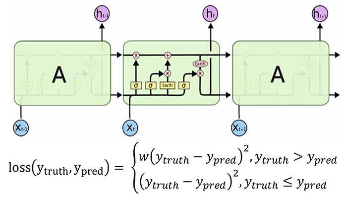 We are designing a LSTM (long short-term memory) model to overcome the challenges in real-world sales forecasting. LSTM is an extension of RNN (recurrent neural network) that can learn long-term dependencies in the sequence. As the loss function commonly used in LSTM assigns equal weighting to each prediction, and incorporate user preferences, it can accommodate business strategies by appropriately underestimating or overestimating predicted values. We designed a new loss function which can adjust by weight (“w”); the greater the “w”, the more the overestimation of the predicted result - but it still based on the law of ordinary predicted value. Further, as the sales of merchandise cannot be less than “0,” the rectified linear activation function (ReLU) was defined as ReLU (x) = max (x, 0). The model structure and loss function are as shown in Figure 1 below.