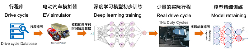 电动汽车行驶里程容易受到车型、温度、速度等因素的影响,因此预测起来相当复杂,现有的剩余里程预估精度约为70%左右。王昌明和他所在的团队利用深度学习模型和实际行程参数,开发了短时高效的剩余里程预测模型。经验证表明,该模型仅利用30组实际行程的数据训练即可获得精度达85%~90%的预测结果。通过该方法可以获得高精准度的剩余里程预测,同时,结合了里程预测技术的车队管理系统通过合理计划,可减少15%-20%的行驶里程,从而节约成本、降低碳排放量。