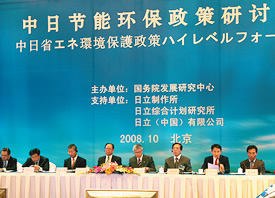 另外,日立在中国国家发展改革委员会的大力支持下,从2007年起,共同举办了三届“节能环保技术交流会”,以环境为主题,力图通过与中日两国的企业、研究机构、大学之间的交流与合作,为中国的环境保护活动贡献力量。2008年10月,由中国国务院发展研究中心主办的“中日节能环保政策高层论坛”在北京举行,日立制作所、日立综合计划研究所、日立(中国)有限公司作为日方支持单位协助了论坛的召开。