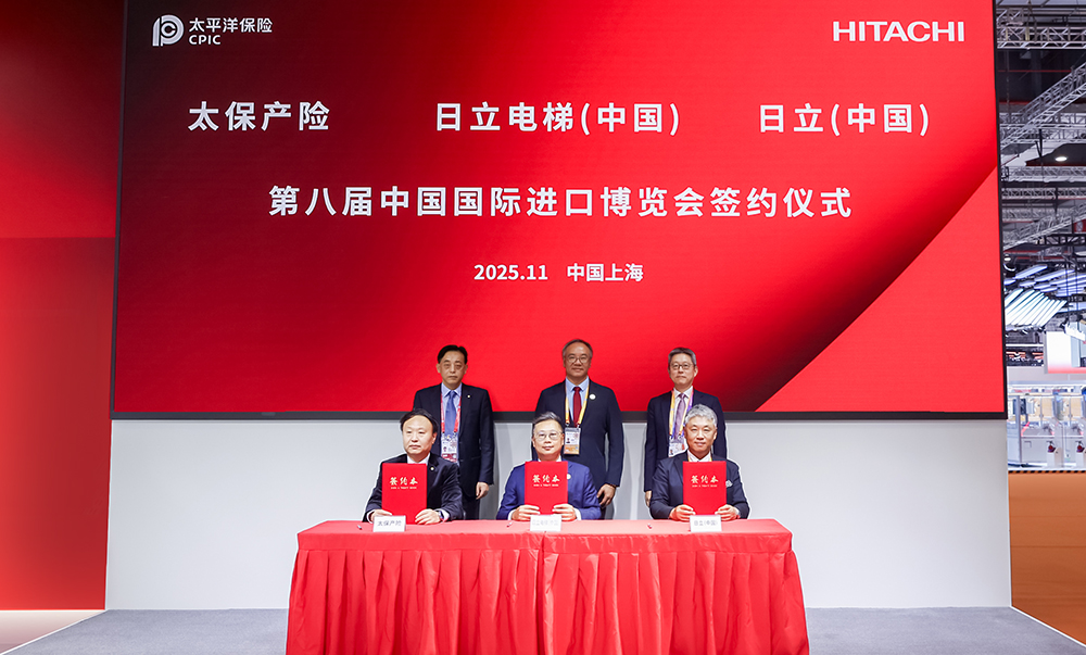 2025年11月5日,在第八届中国国际进口博览会(以下简称“进博会”)上,日立(中国)有限公司(以下简称“日立(中国)”)、日立电梯(中国)有限公司(以下简称“日立电梯(中国)”)与中国太平洋财产保险股份有限公司(以下简称“太保产险”)共同签署了关于探索创新的电梯“保险+服务”模式的战略合作协议书。中国太保集团副总裁、太保产险董事长俞斌,太保产险副总经理李超,日立集团中国总代表明田笃弥,日立(中国)副总经理前川广树,日立电梯(上海)总经理陈炜桥,日立电梯(中国)营业部长何粲宇等三方公司代表出席本次签约仪式,并就合作内容进行了深入交流。